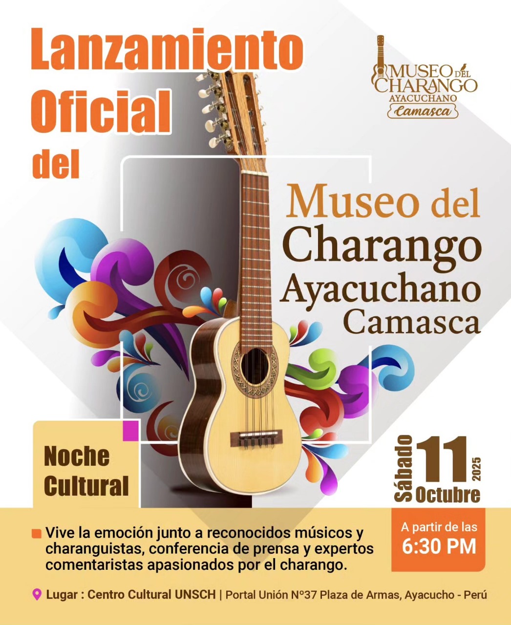 Un sueño familiar que se remonta a generaciones se materializa en Ayacucho. El próximo sábado 11 de octubre, a las 6:30 p. m., el Centro Cultural de la Universidad Nacional de San Cristóbal de Huamanga será el escenario de un hito cultural: la apertura oficial del Museo del Charango Ayacuchano Camasca.